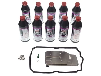 This kit contains the filter, pan gasket, (6) pan bolts, fill guide tube, drain plug and seal plus (10) liters of OE spec transmission fluid.