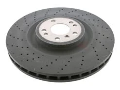 Brake discs or brake rotors are discs made of iron, steel, ceramic, or carbon fiber with a cylinder hub/hat and drilled plate that attach to the lugs around a wheel hub and are used to slow the wheel to a stop. Brake discs function by having brake pads clamped to either side of the disc to create friction and slow the wheel. Brake discs are also used in the function of the parking brake to hold the wheels still when parked.