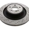 Brake discs or brake rotors are discs made of iron, steel, ceramic, or carbon fiber with a cylinder hub/hat and drilled plate that attach to the lugs around a wheel hub and are used to slow the wheel to a stop. Brake discs function by having brake pads clamped to either side of the disc to create friction and slow the wheel. Brake discs are also used in the function of the parking brake to hold the wheels still when parked.
