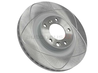 - 350x2mm vented slotted front disc brake rotor mounts to the front wheel hub to slow and stop the vehicle when the brake pedal is pressed and brake pads clamp to the rotor