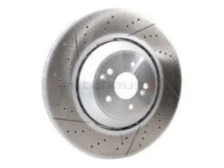 - This 390x36mm vented, slotted, and cross-drilled front disc brake rotor mounts to the front wheel hub to slow and stop the vehicle when the brake pedal is pressed and brake pads clamp to the rotor